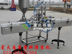 豆瓣酱灌装机/豆豉酱灌装机-是星火公司专门针对豆瓣酱、豆豉酱产品进行定量灌装的一种新型灌装设备,在使用上分为自动灌装机和半自动灌装机两种,其中半自动机型需要手动放瓶、可以选择AUTO灌装和FOOT灌装,然后结合台式旋盖机旋盖、半自动贴标机进行贴标,而卧式搅拌黄豆酱灌装机/豆豉酱灌装机一般是配合自动旋盖机、浆糊贴标机等设备一起使用,从而构成一套灌装流水线hjshdlalhdsj。
